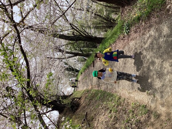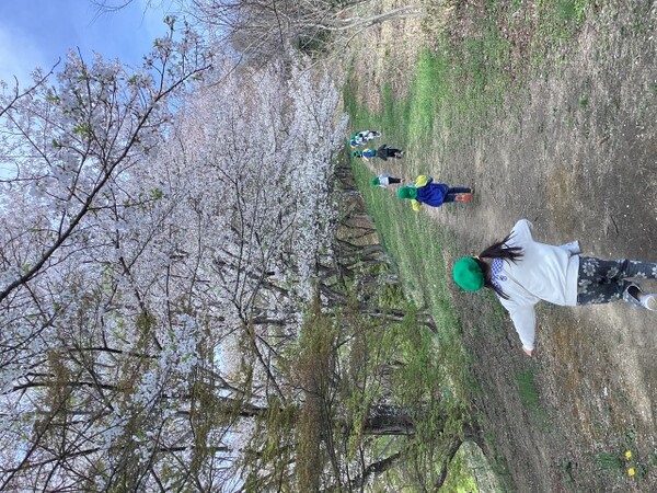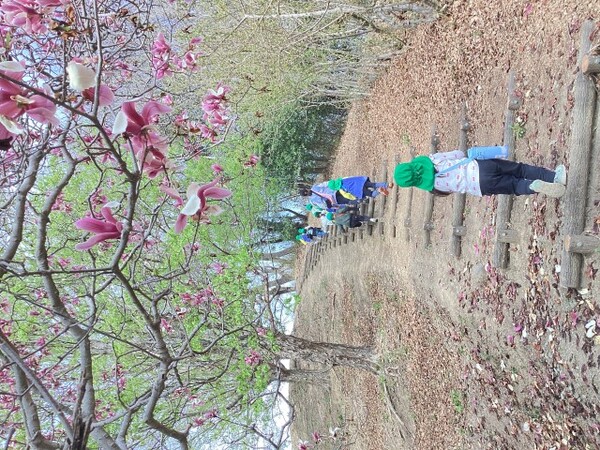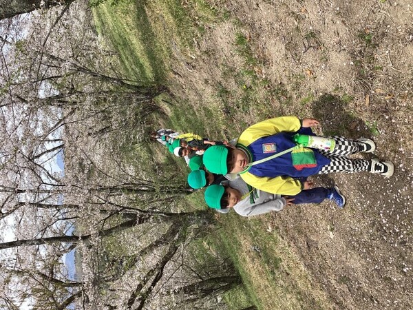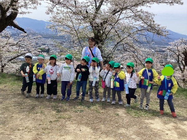 進級そうそう年長組は桜を楽しみに城山へ登って来ました。 |