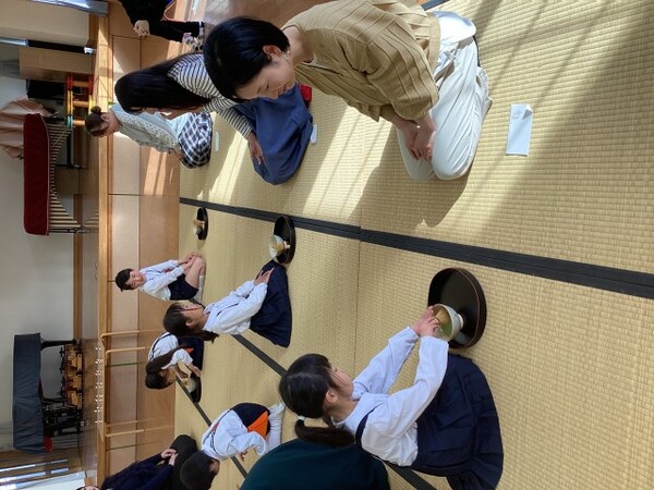 2年間お茶のお稽古を学んだ締めくくりに、お別れお茶会を行いました。 |