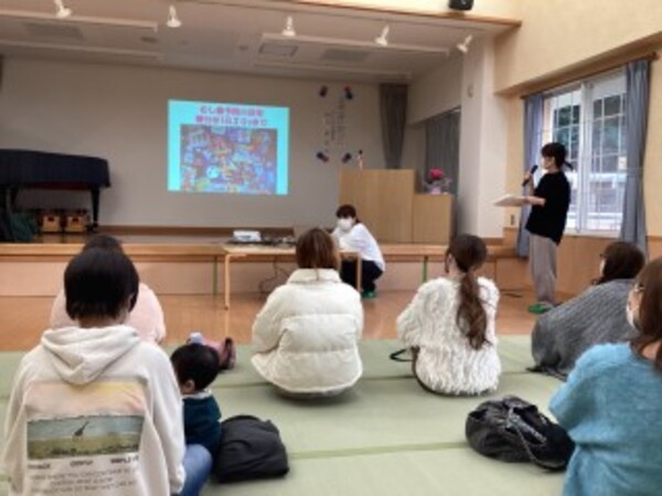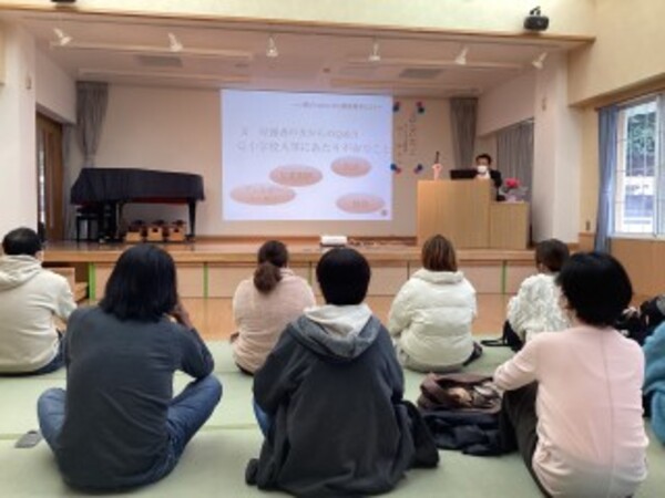 地域の小学校の校長先生をお招きして、年長児保護者様に講演をしていただきました。 |