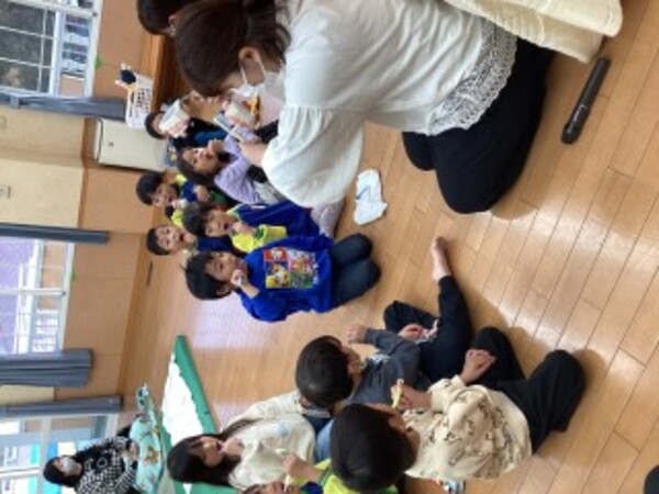 つき組さんとその保護者は向けた、歯科衛生士さんによるむし歯指導がありました。 |
