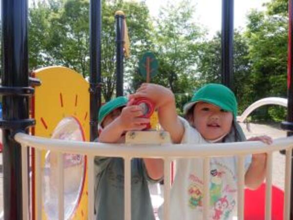 ドラえもんバスに乗ってゆき組さんがもみじ平公園におでかけ!ゆき組さんにちょうどいい遊具もありますが… すぐに噴水広場へ! |