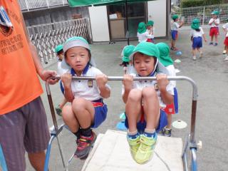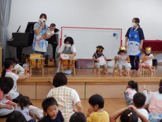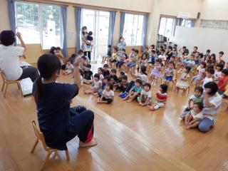 1月生まれのお友達をみんなでお祝いしました。大きな福笑いに挑戦したのは、1月生まれのお誕生者です。目隠ししてパーツを貼っていきますが、みんなで「もっと右!」「下だよ」と応援します。福の神とアンパンマンが出来上がりました。まさしく福笑いでみんなで大笑いしました(*^^*) |