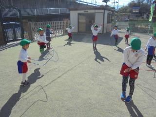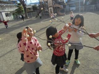 カレーを煮込んでいる間に、ピッコロ畑の野菜や花のお世話。そして、キッドビクスをしたりして楽しく遊びました。 |