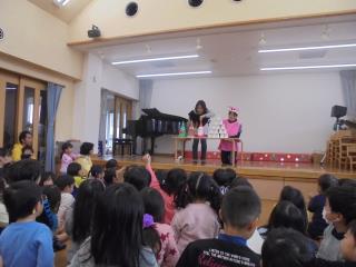 たくさん遊んだ後は、12時の鐘の音と共にお昼の時間。お腹ペコペコのみんなは、あっという間に完食です)^o^( |